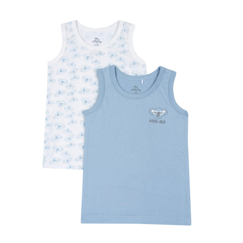 Комплект от два детски потника, изработени от мека и дишаща памучна материя, подходящи за ежедневна употреба. Моделите са с удобна кройка без ръкави, която осигурява свобода на движение и комфорт през целия ден.