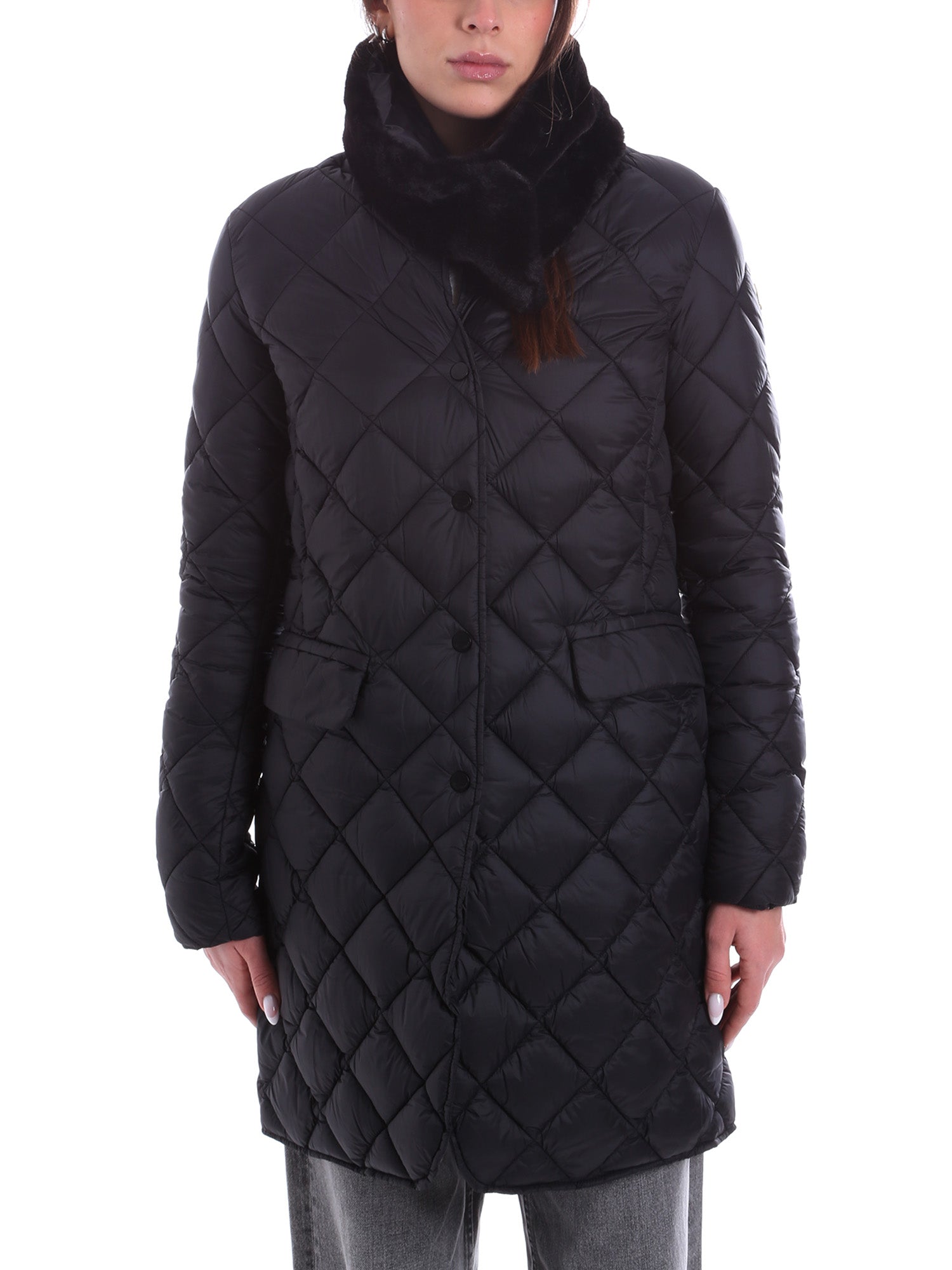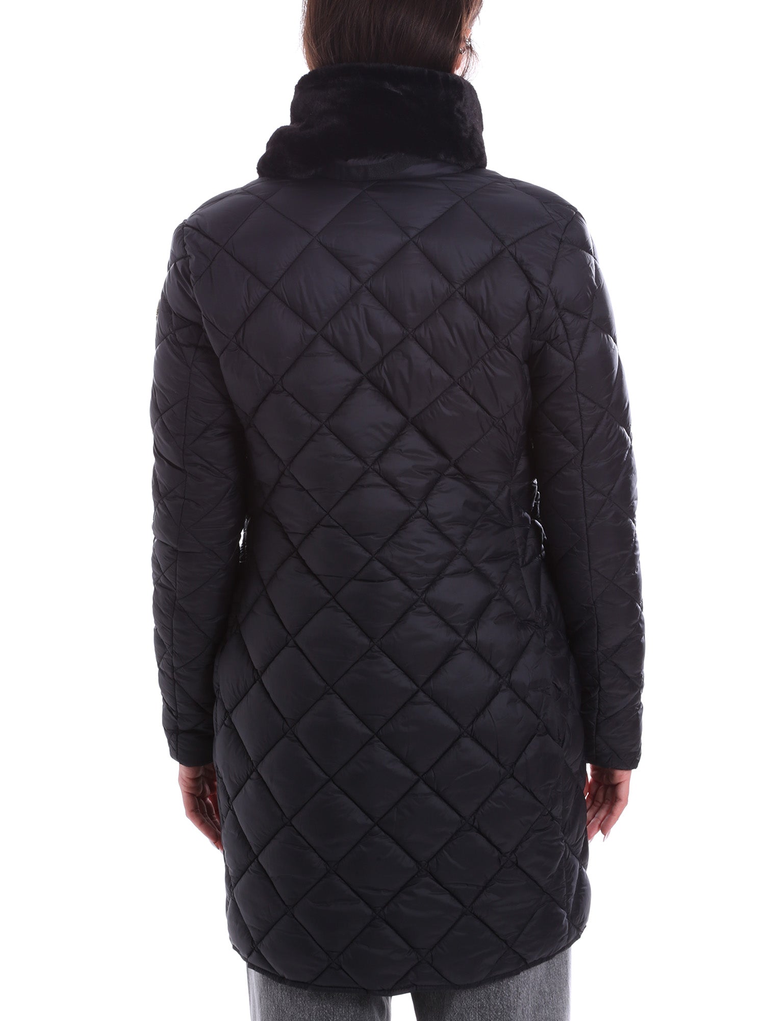 Дамско яке с пух, универсално и предназначено за ежедневна употреба. Завършено е с яка от мека изкуствена кожа, която може да се сваля. Закопчаване с копчета с лого, предни джобове.